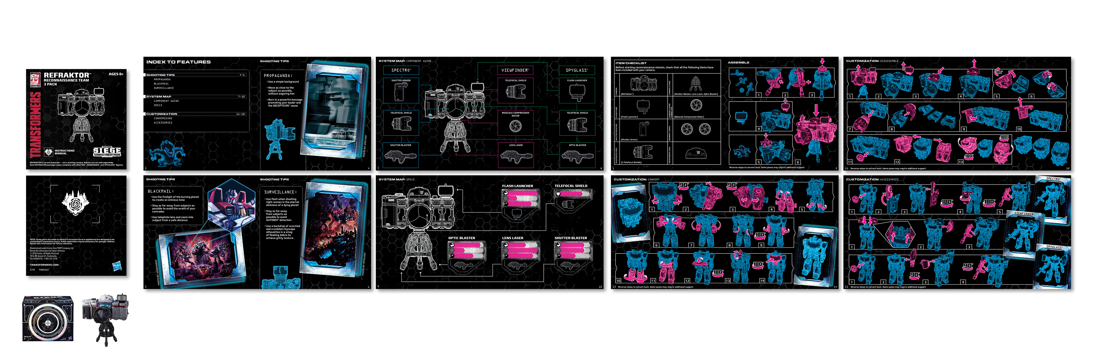 As the lead instructions designer for the Transformers line by Hasbro and Takara Tomy, I have created instructions and bonus content for hundreds of Transformers figures. Below are a few of my favorite projects from the past few years.